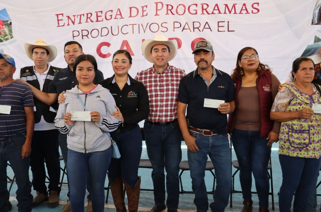 Durante este evento se otorgaron diversos insumos y recursos estratégicos, como equipamiento para invernaderos, semillas de jitomate, vientres porcinos y apoyos económicos destinados a atender contingencias agrícolas y pecuarias, contribuyendo así al fortalecimiento integral de la actividad productiva en la región.