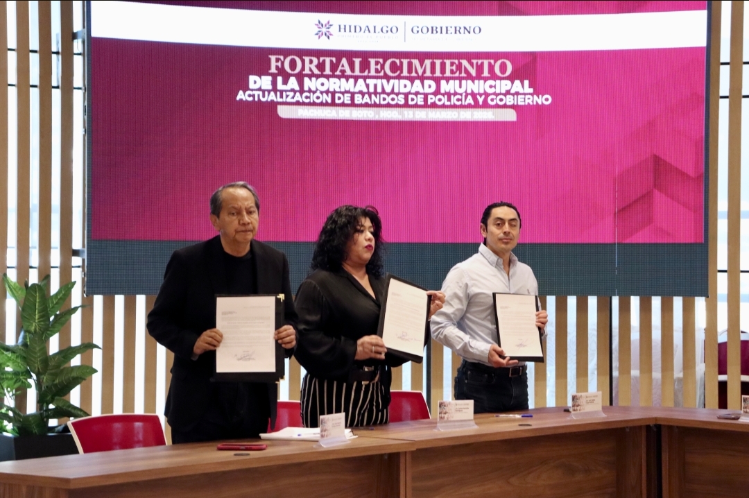 Pachuca de Soto, Hidalgo. –  El gobierno que encabeza Julio Menchaca llevó a cabo una jornada de trabajo para la Firma de la Solicitud para la Publicación de los Bandos de Policía y Buen Gobierno, un paso decisivo para fortalecer la normatividad municipal y garantizar un marco jurídico actualizado que responda a las necesidades actuales de la población. El encuentro contó con la participación de servidores públicos estatales, municipales y del Poder Judicial.