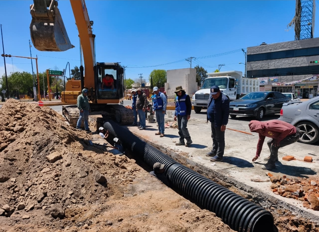 Tizayuca, Hidalgo.- La Comisión de Agua y Alcantarillado del Municipio de Tizayuca (CAAMTH) ejecutó una intervención estratégica mediante la instalación de 18 metros lineales de tubería de alta capacidad para optimizar la interconexión de colectores y rejillas en la glorieta de acceso a la zona industrial.